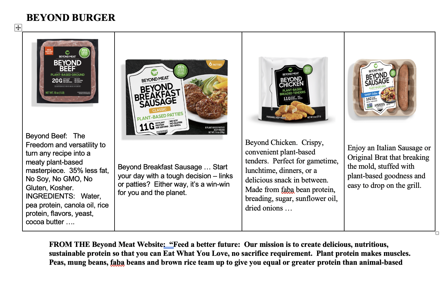 Vegan Burger Meat, Crumbles, & Sausages | Beyond Meat The people, places and communities that Go Beyond their own limits. "I've been focusing on going more plant-based and can tell you that Beyond Meat is my absolute favorite. I love how all their products not only taste amazing but are also good for me and my family." "I love that Beyond Meat does not use GMOs and that it's sold all over ...